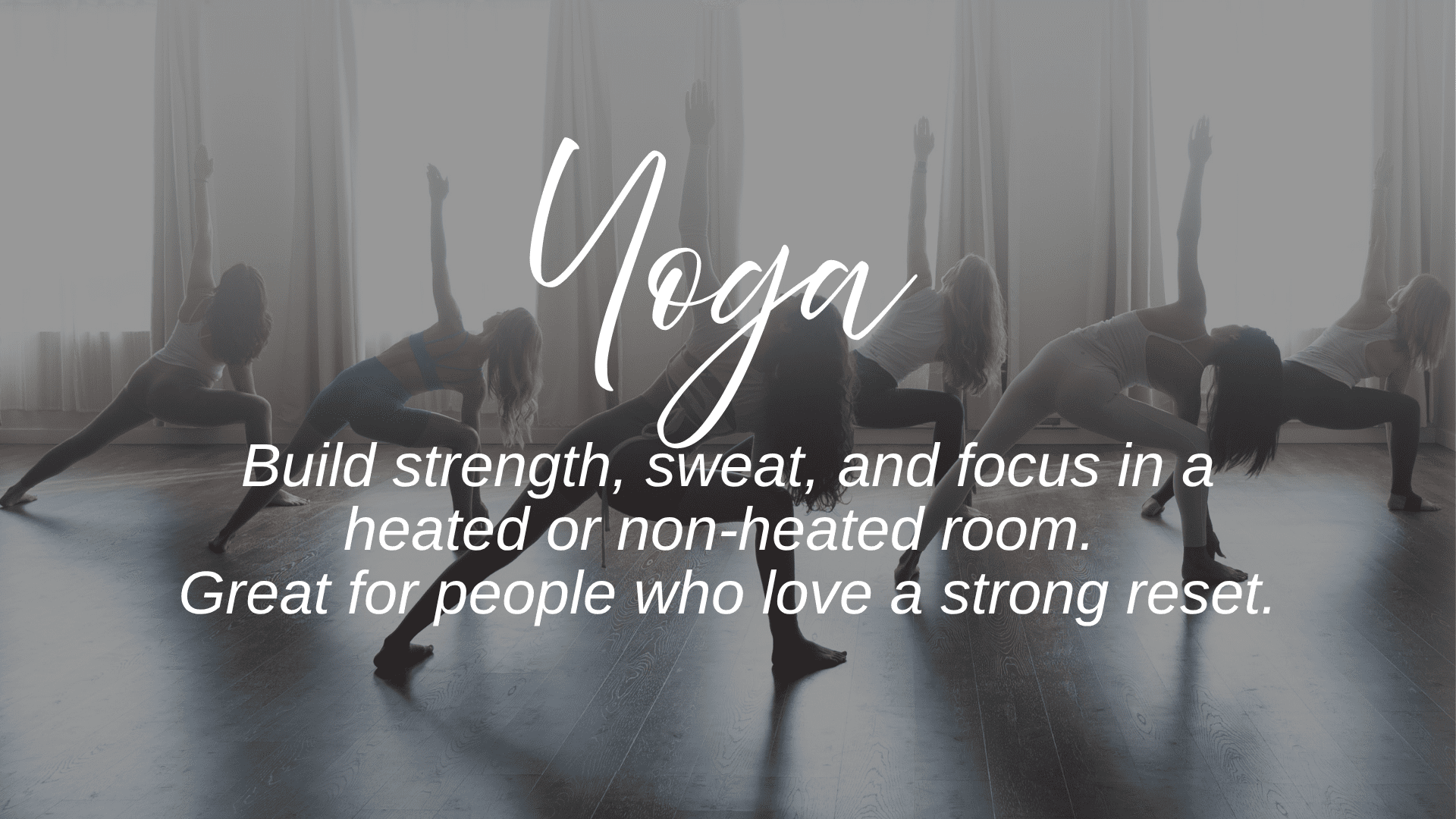Our schedule blends hot and non-heated yoga, plus performance-based options like Pilates and Lagree, so you can choose the intensity, pace, and focus that fits your day—mobility, sweat, core strength, or a full reset.