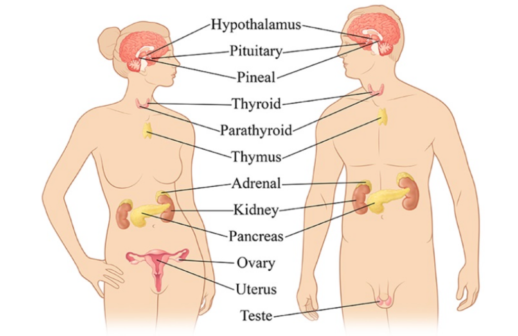 Ultimately the brain, mind, pituitary gland and nervous system guide the endocrine system.