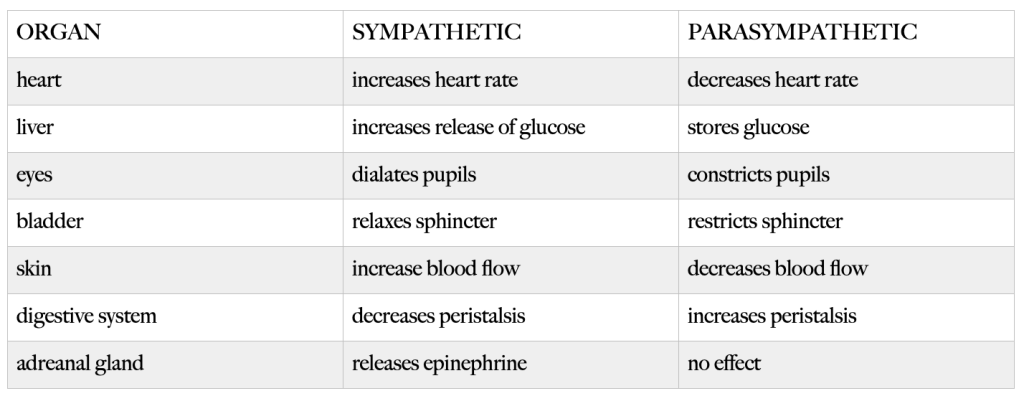 Our elimination process is directly related to our autonomic nervous system; the parasympathetic side will assist in the digestion and elimination of food and the sympathetic side will reserve that energy and redirect it towards systems in the body that demand energy for “fight and flight”.
