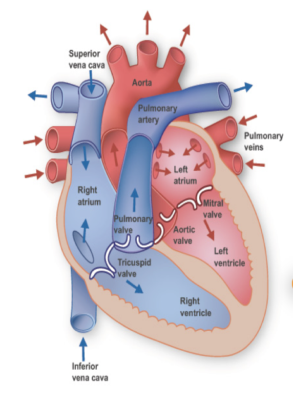 Oxygen depleted blood, or (blood that has circulated through your system having delivered O2 to all of your body’s needs in tissues and organs) is then filtered into the right side of the heart through the superior and inferior vena cavity.